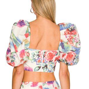 Amanda Uprichard Lana Puff Sleeve Crop top in Pasadena Floral