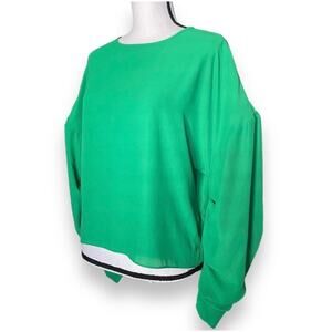 Amanda Uprichard Long Sleeve Chiffon Blouse Top Sz S Green Boatneck