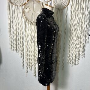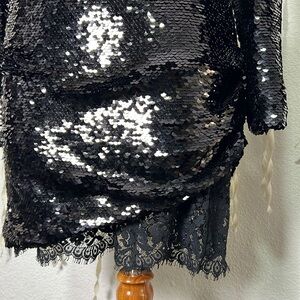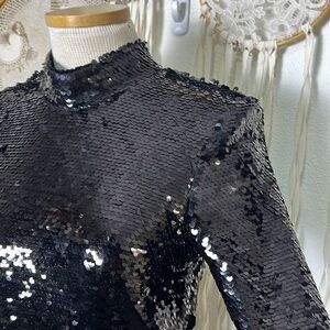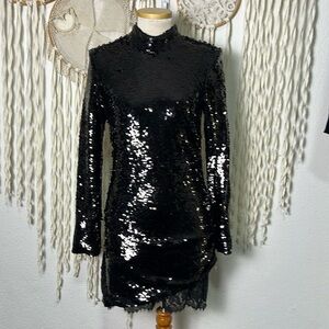 Amanda Uprichard Long Sleeve Open Back Black Sequin Mini Skirt M