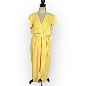 Amanda Uprichard Martinique Dress Women's Plus 2X Yellow High/Low Faux-Wrap Belt