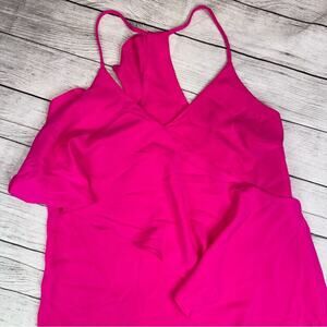 Super Cute Dress with a diagonal ruffle front and racerback ruffle back.