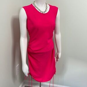 Bright pink sleeveless dress with sides that can be pulled and tied shorter or longer