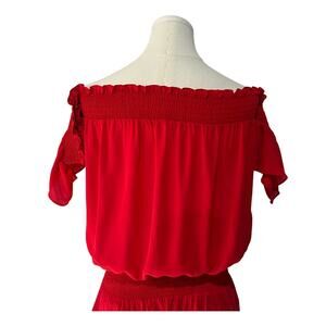 Amanda Uprichard Off Shoulder Smock Waist Red Lined Mini Dress Measures Sml/Med