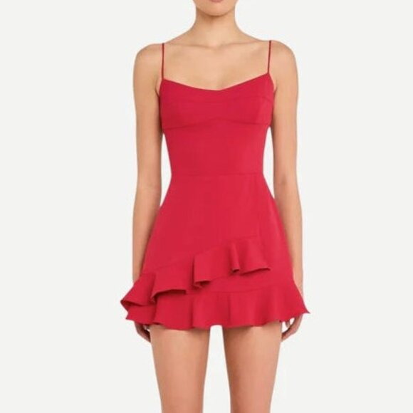 Go with the flow in the Amanda Uprichard Magnolia Romper. Designed with slim straps and a ruffled skirt, this mini brings a perfect touch of playful energy. Dress it down with cowboy boots during the day, or add heels for an evening feel.