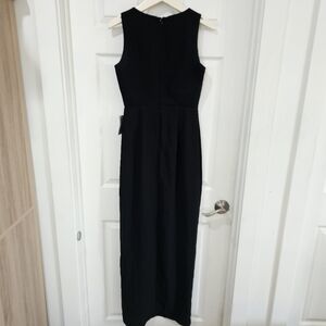 The puzzle piece inspired neckline puts a refreshing contemporary spin on this simply stunning gown by Amanda Uprichard. A daring side vent emboldens this night-out gown designed in a sleeveless silhouette with a notched neckline.