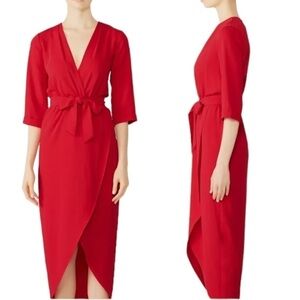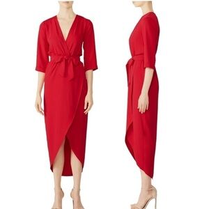 Amanda Uprichard Red Crepe Wrap Midi Maxi Dress Size P (0-2)