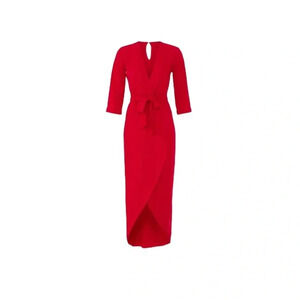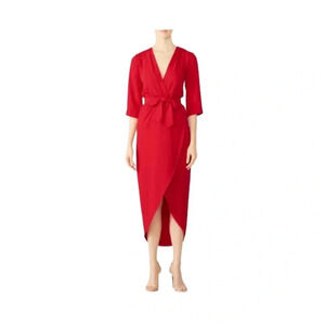Amanda Uprichard Red Dress Timeless Wrap V-neck High-low 3/4 Sleeves Size S RTR