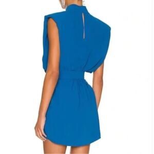 Sleek, bold, and effortlessly chic — this Amanda Uprichard Cleary Dress in “Rhapsody” blue is the ultimate modern mini for statement dressing. Crafted from smooth polyester with a structured yet fluid drape, it features exaggerated cap sleeves, a mock neckline, and a detachable waist tie that flatters your shape. The pullover styling and back keyhole closure make it both easy to wear and refined in design.