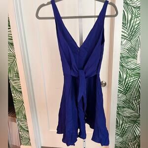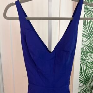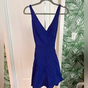 Amanda Uprichard Royal Blue 100% Silk Plunging Neckline Mini Dress Medium