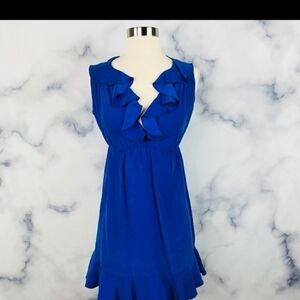 Amanda Uprichard Royal Blue Midi Dress ruffles 100% silk classic party size Smal