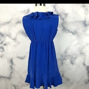 Amanda Uprichard Royal Blue Midi Dress ruffles 100% silk classic party size Smal
