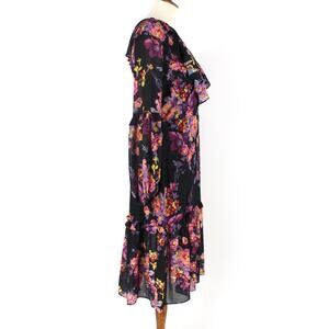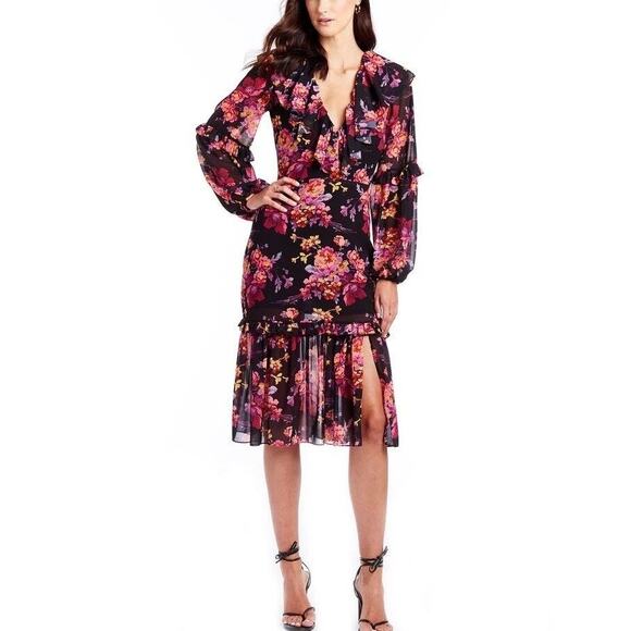 AMANDA UPRICHARD TALULAH RUFFLE TRIM V-NECK EVENING BLOSSOM FLORAL MIDI DRESS
