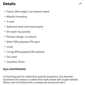 Amanda Uprichard Rylee Dress size medium, navy metallic tweed