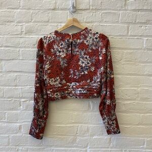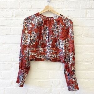 Amanda Uprichard || Samira Floral Leopard Keyhole Blouse Orange / Leopard Small
