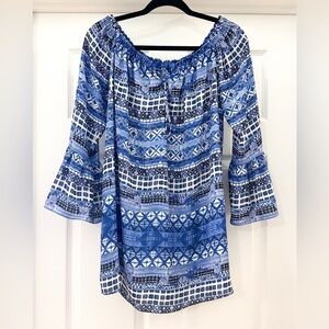 Amanda Uprichard Saratoga Off the Shoulder Mini Dress Tapestry Print Bell Sleeve. Size small. Excellent condition. Flowy. Lined. Lightweight. Elastic band at top. Small Lace up String tie at neckline.
