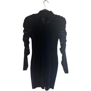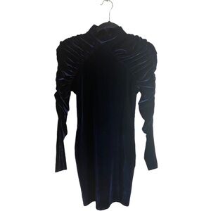 Amanda Uprichard Shandi Velvet Ruched Mini Dress S Navy High Neck Bodycon Party, preowned in a great condition