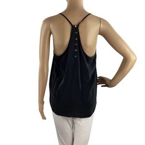Amanda Uprichard Silk Racerback Tank Top Dusty Black Button Detail Small