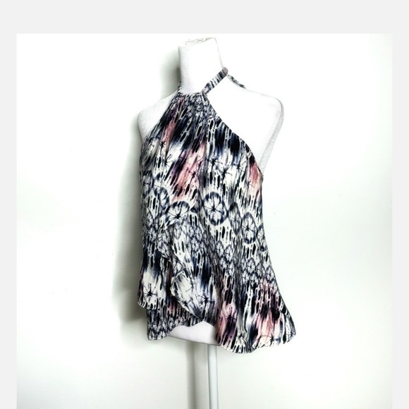 Amanda Uprichard Silk Top Halter Style Tie Neck Flyaway Styling Watercolor Print Size Medium