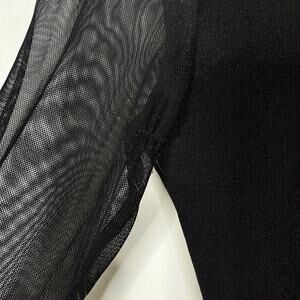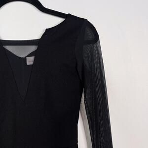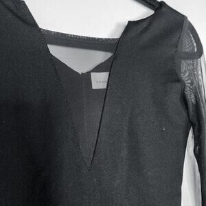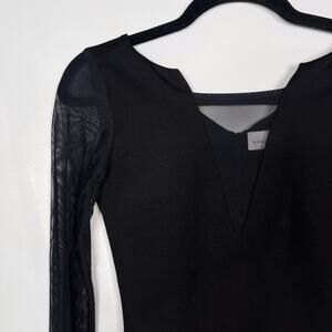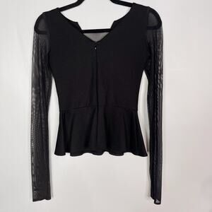 Amanda Uprichard Size P Black Mesh Peplum Long Sleeve Top Deep V Cut Out Stretch