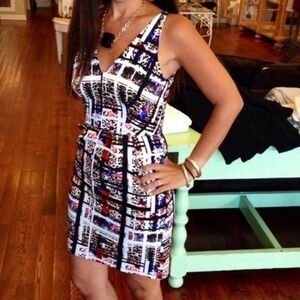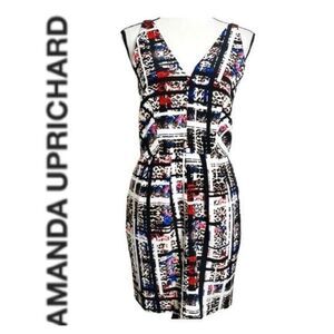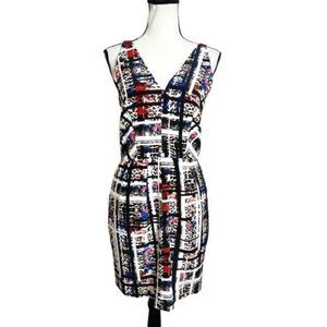 Amanda Uprichard Sleeveless Multicolor v-neck geometric leopard print silk mini dress small