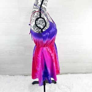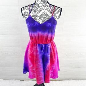Amanda Uprichard Tie Dye Spaghetti Strap Fit & Flare Silk Dress