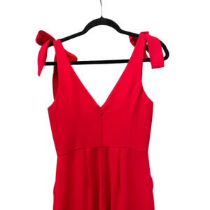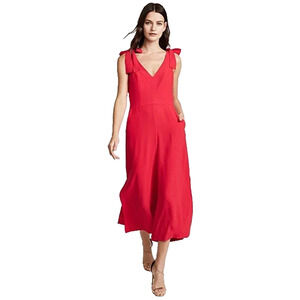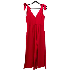 Amanda Uprichard Tie Shoulder Jumpsuit V-Neck Wide Leg Red Size S