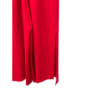 The Amanda Uprichard Red Jumpsuit is a stylish and bold one-piece outfit perfect for the summer and spring seasons. This sleeveless jumpsuit features a unique design with bow tie straps and wide leg slits, adding a touch of elegance. The wide leg style and pockets offer both comfort and functionality, making it a versatile piece for various occasions. Made in the United States by the brand Amanda Uprichard, this jumpsuit is a standout addition to any woman's wardrobe.
