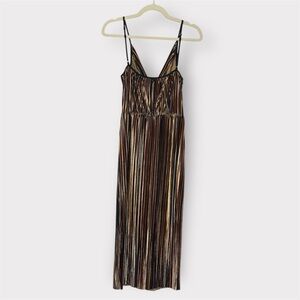 Amanda Uprichard Velvet Striped Multicolor V-Neck Spaghetti Strap Midi Dress- S