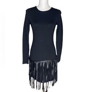 Amanda Uprichard Wm’s Sz XS Black Bodycon Long Sleeve Bodycon Fringe Mini Dress