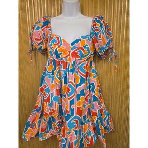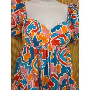 Amanda Uprichard Womens Colorful Puff Sleeve Dress S Sicily Baby Doll Revolve