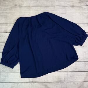 Amanda Uprichard Women's Navy Pullover Blouse with Keyhole Neckline Size Small