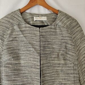 Amanda Uprichard Women's Small Blazer Grey Metallic Neutral Tweed Fringe Cropped