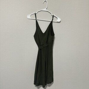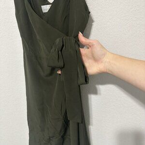 Amanda Uprichard Wrap Mini Dress Army Green Size Medium 100% Silk Sleeveless
