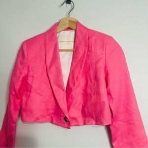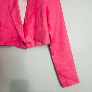 Amanda Uprichard X REVOLVE Linen Pembroke Blazer in Bubblegum Hot Pink Cropped