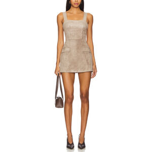 Amanda Uprichard 'Yorke' Tan Polyester Skort Romper Size XS: exposed back zipper closure, front flap welt pockets, midweight faux suede fabric, measurements: 15.5 inch bust x 28.5 inch length.