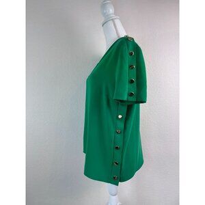 Amanda Uprichard brand women's size large kelly green Julep Melissa top. In great pre-owned condition. Short sleeve v-neckline top with gold stud snaps down the left side and sleeve. Snaps are functional on the first few then it is sewed shut.