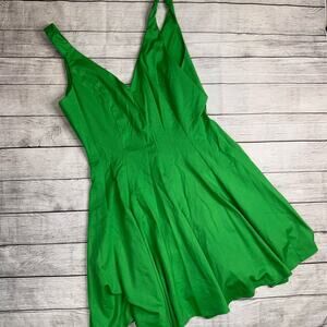 Amanda Uprichard x GB NEW Ponte Knit V-Neck Fit and Flare Dress Green Size XL