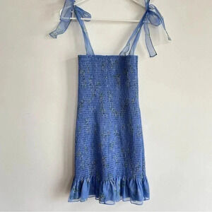 Amanda Uprichard x Revolve Amara Smocked Mini Dress Floral Blue Sundress Petite
