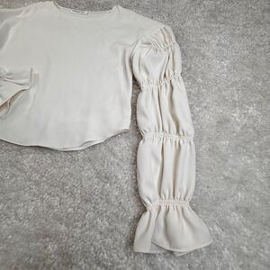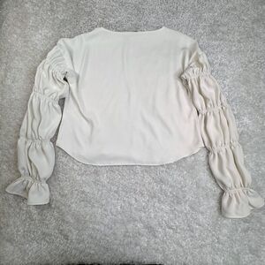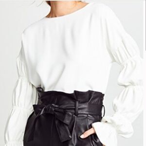 REVOLVE Amanda Uprichard Schmidt Puff Smocked L/S Blouse. Gently preowned in overall good condition. no rips or holes. Color is not a bright white, more like an off white/ivory