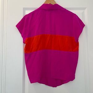 Amanda Uprichard Silk Color Block Blouse Size Small Orange and Pink