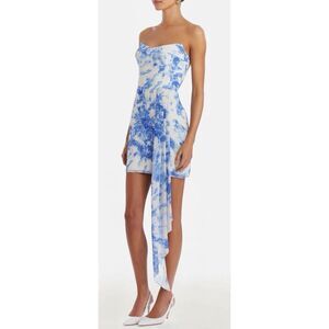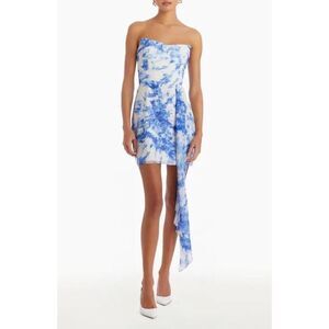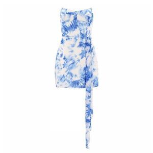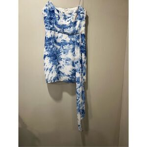 Amanda Uprichard Women's Blue White Tie-Dye Draped Treasure Mini Dress XL NWOT