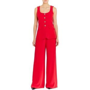 Amanda Uprichard Women's Scarlet Red Kya Wide-Leg Formal Jumpsuit Size Medium