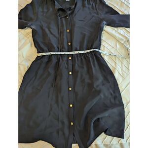 Amanda uprichard black silk button front dress elastic waist 3/4 sleeve sz s euc