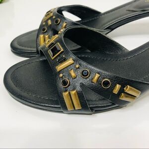 Amanda Smith Black Gold Aztec Beaded Sandals Heels