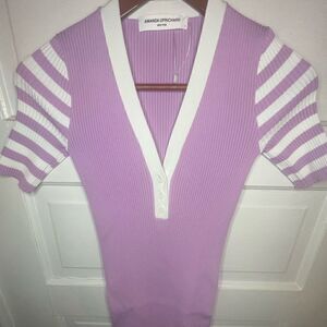 Amanda Uprichard Ribbed V Neck Dress in Lavender Size S