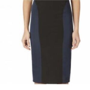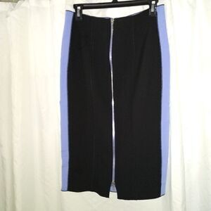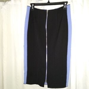Amanda Wakeley Size 6 colorblock pencil skirt, baby blue side stripes, back zipper closure, 25" long, 27" waist, polyester, viscose, cotton, elastaine, slight stretch, super lux designer, favorite if the Royals, work, career, dressy.