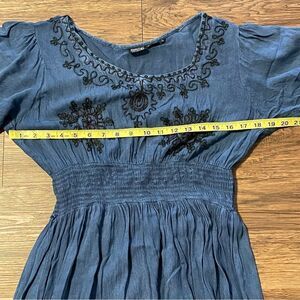 Amanda’s Collection Maxi Short Sleeve Embroidered Peasant Dress Blue Black Large