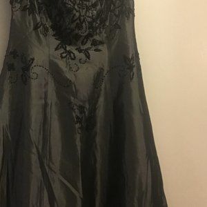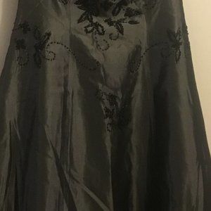Italian Made Amani Dark Gray with Black Beads Hand Beaded Silk Evening Gown in Italian size 40 or US size 4
