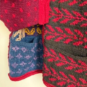 Amano Hand Knitted Multicolor Patchwork Wool Chunky Cardigan Sweater Medium
