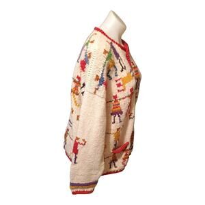Amano Vintage Wool Hand Cream Aztec People Dancing Cardigan Sweater Size XL
